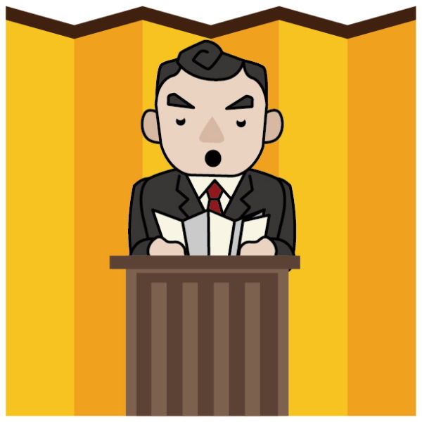 スピーチは大きな声で行いましょう。ボソボソとしゃべっていたのでは、とても良い文章だとしても決して伝わりません。また、小さな言葉を発することで自信が無くなり、余計に緊張してしまいます。マイクを持ったら「どうにでもなれ」これぐらいの大きな気持ちで望むことが大切です。